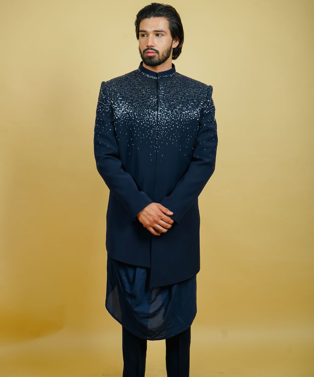 At DHOIRE, we blend traditional elegance with contemporary trends to create a unique sartorial experience for grooms. Each piece is meticulously crafted by skilled artisans, using luxurious fabrics and intricate embroidery. Our commitment to quality and attention to detail ensure that every ensemble exudes sophistication and opulence, making every groom feel like royalty.